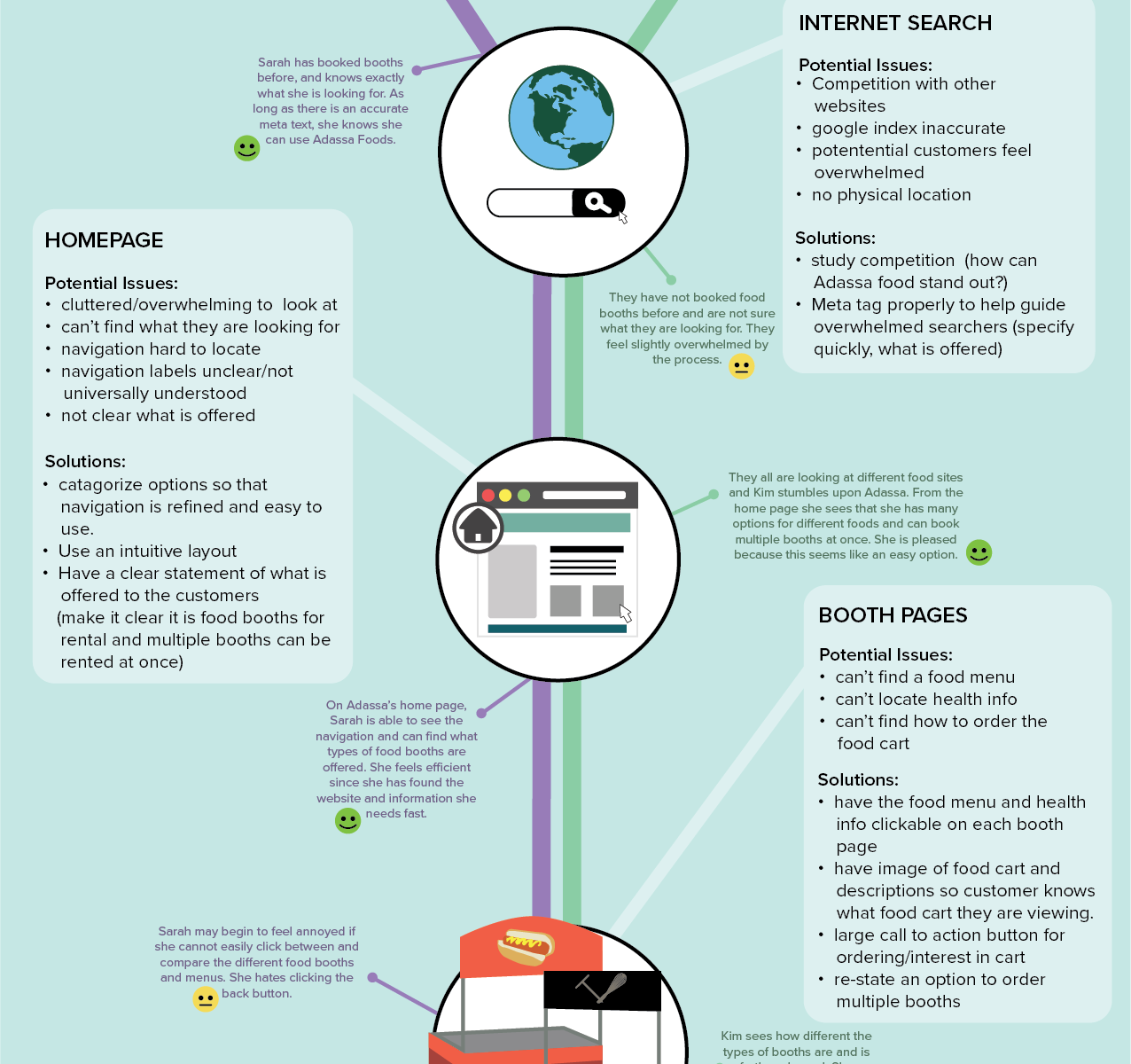 A user journey map for a food cart rental website